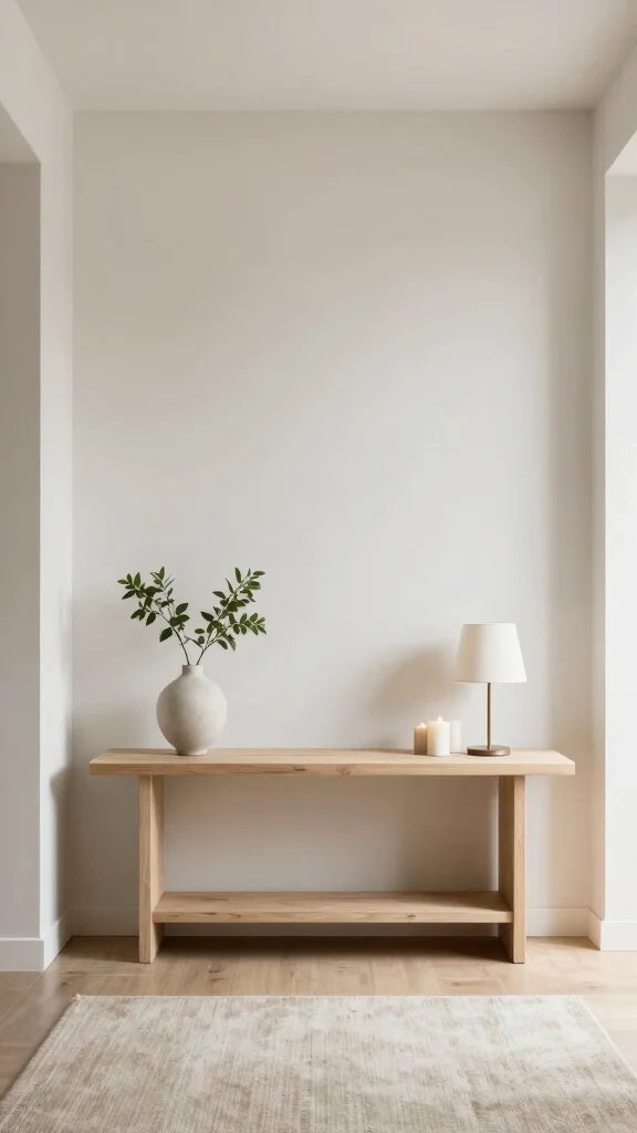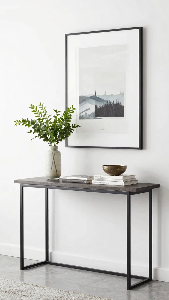 Which decor items pair well with hallway console tables in a minimalist scheme?