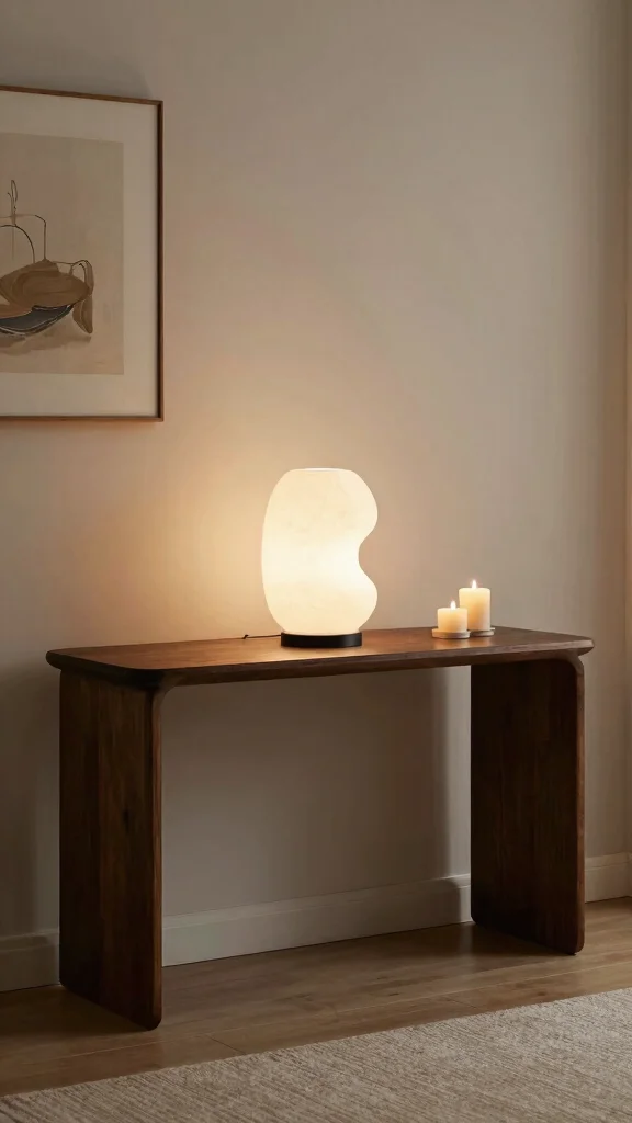 Lighting is crucial in setting the mood of your entryway. A statement lamp or fixture can serve as an eye-catching focal point for your console table decor. A sculptural lamp can double as a piece of art, enhancing the overall design while providing necessary illumination.