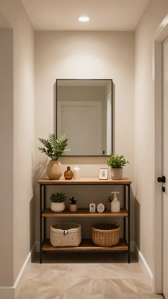 Mirrors are an excellent way to create a sense of spaciousness in narrow hallways. A strategically placed mirror above your console table can enhance light and make the entryway feel larger and more inviting. Choosing a simple, sleek mirror that complements your table’s style is key.