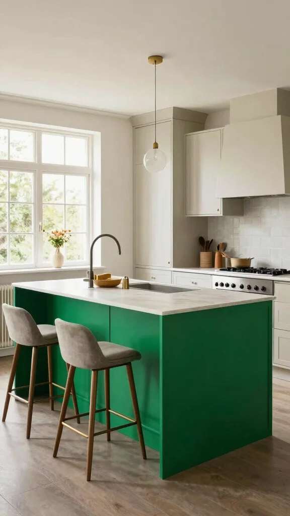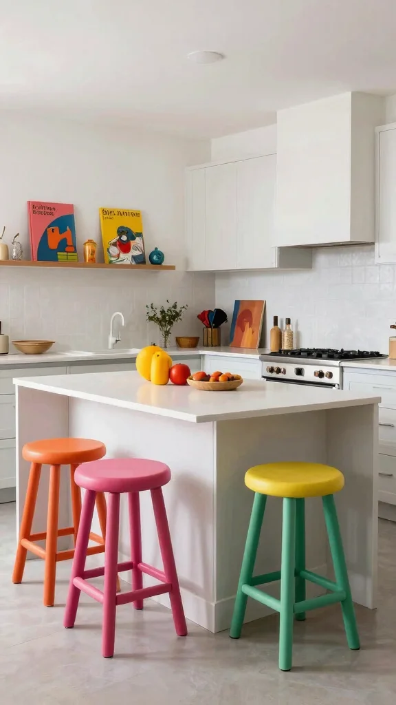 If a boldly colored kitchen island isn’t your style, consider adding personality through colorful accessories. Bright bar stools, vibrant kitchenware, or playful decor can infuse life into an otherwise monochrome space. This approach allows you to maintain a sleek island design while introducing fun and creativity. Regularly swapping out accessories can keep your kitchen feeling fresh and exciting without the need for major renovations.