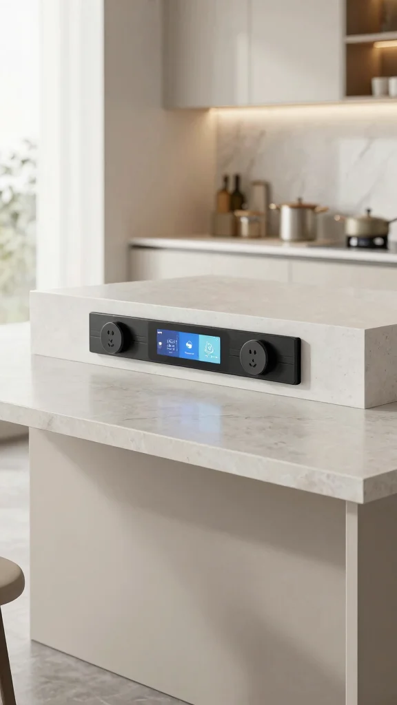 Easy, efficient, and chic—integrated tech on a kitchen island is a game changer. Built-in outlets, wireless charging, and smart displays keep devices tidy and recipes at your fingertips. For kitchen with island ideas, you’ll cook more, clutter less, and prove style meets function.