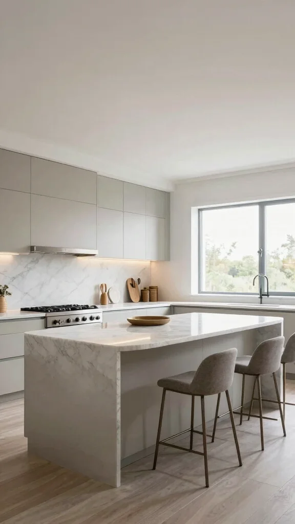 To embrace this style, keep decor to a minimum for a clutter-free surface that emphasizes the beauty of your island. Using neutral colors maintains a serene ambiance, allowing the design to shine. This trend reflects a desire for calm and order in today’s busy life.