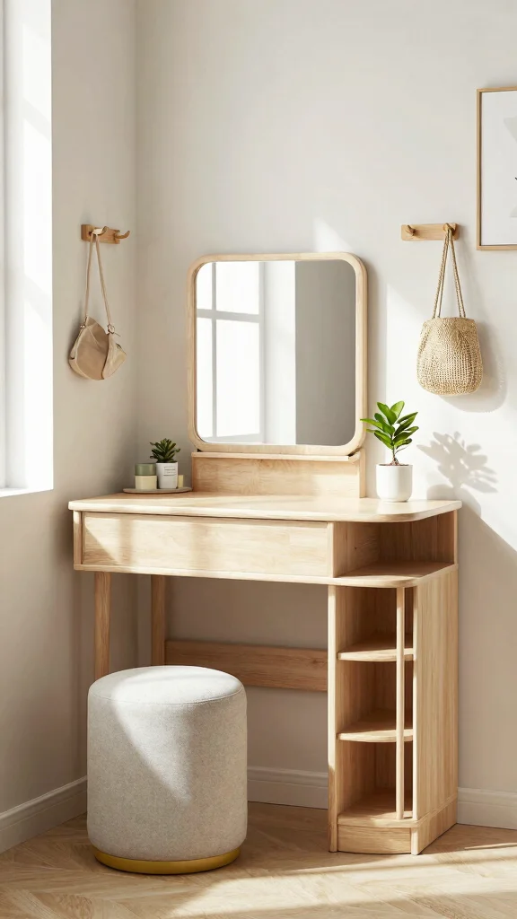 – Install a sleek, foldable dressing table for flexibility.