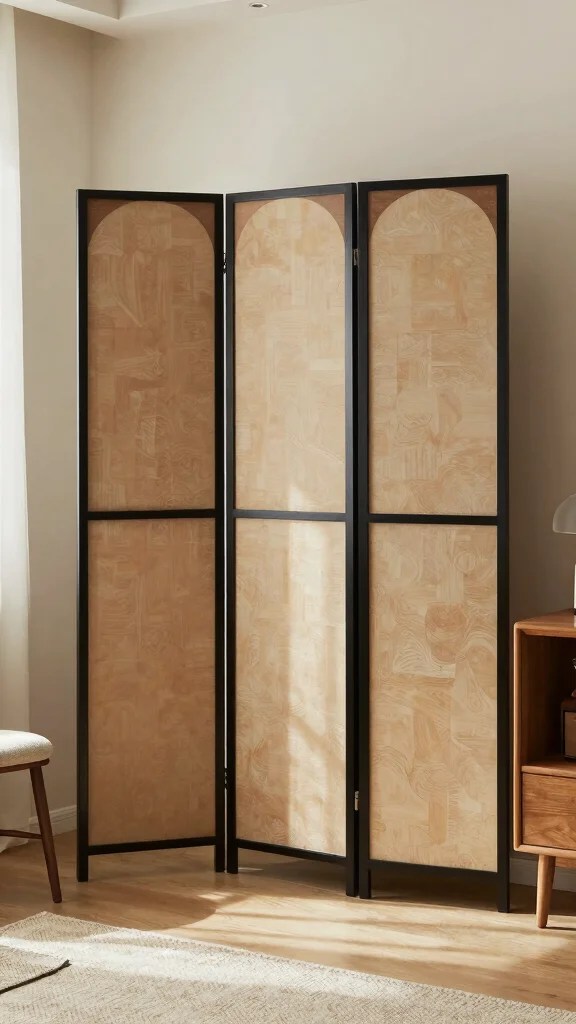 Choose lightweight curtains that complement your decor, or consider a folding screen that serves as a statement piece. Sliding panels can also blend seamlessly with your room’s design.
