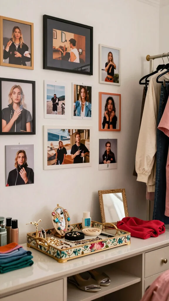 Curating a small gallery wall or using decorative trays for jewelry can add character while maintaining organization. Select colors and textures that resonate with your personal style for a cohesive look.