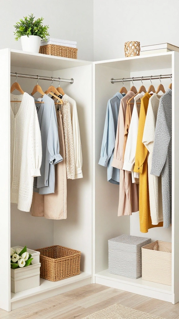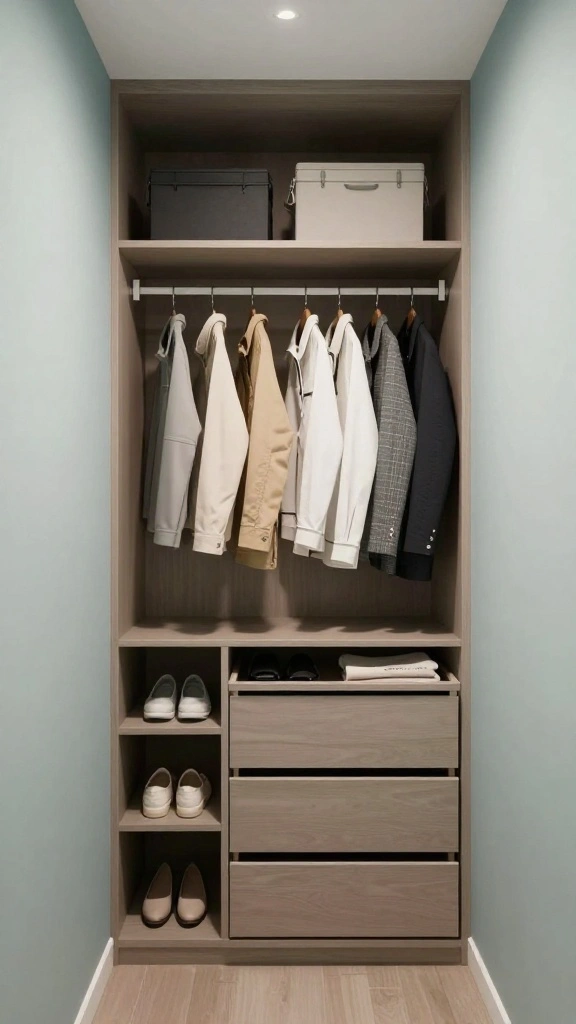 Regularly rotate your wardrobe items seasonally to keep the space fresh and functional, optimizing your storage.