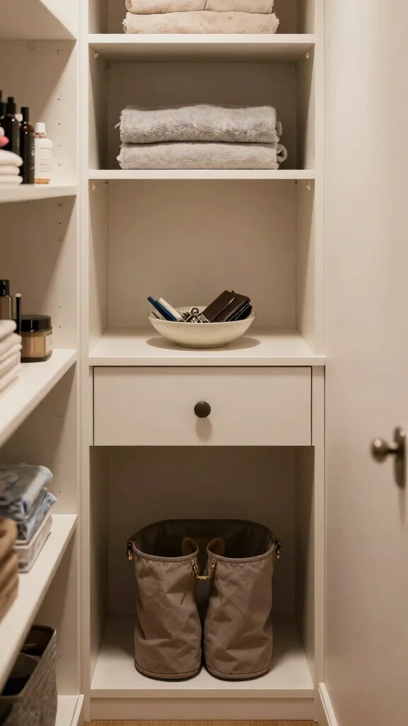 Look for a table that fits snugly within your closet without overpowering the space. This addition can improve organization while adding a stylish touch to your hallway closet.
