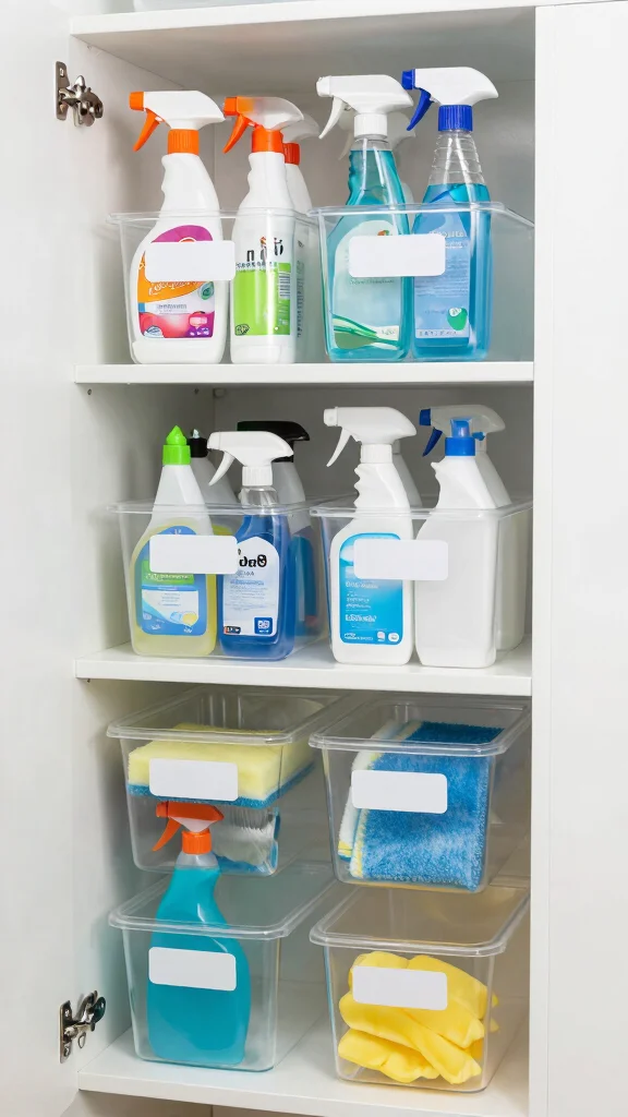 – Store cleaning supplies out of reach of children and pets for safety.