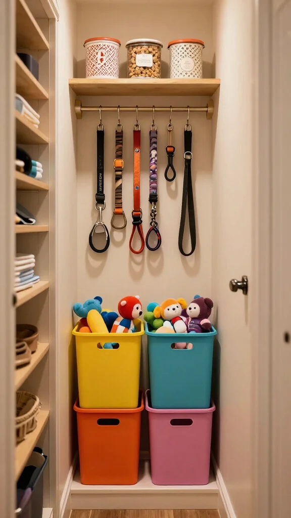Creating a dedicated pet-supply nook in your hallway closet is a small change with big payoff. Leashes, toys, and food stay organized in baskets and airtight containers, so ‘where’s the leash?’ becomes ‘right here, every time.’