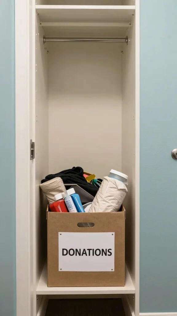 Designating a donation box in your hallway closet encourages regular decluttering. This practice is crucial for keeping your closet organized and functional. When you spot items you no longer need, simply toss them into the box instead of setting them aside.