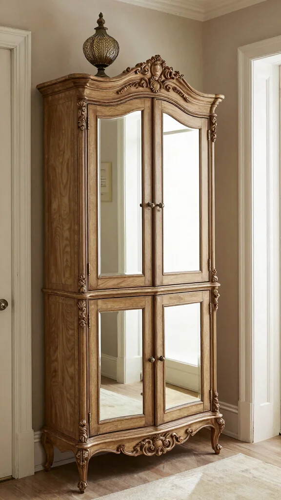 When selecting an armoire, look for options with mirrored or decorative doors to enhance their elegance. Utilizing the spacious interior allows you to keep items neatly hidden away while maintaining a clean hallway appearance.