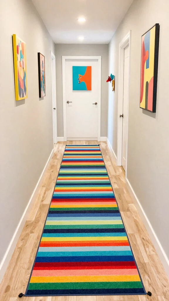 Injecting fun and liveliness into your hallway is easy with a striped runner. Opt for eco-friendly options that utilize natural dyes to create a vibrant array of colors. Picture how stripes can visually elongate your narrow hallway while bringing an energetic atmosphere to your decor.
