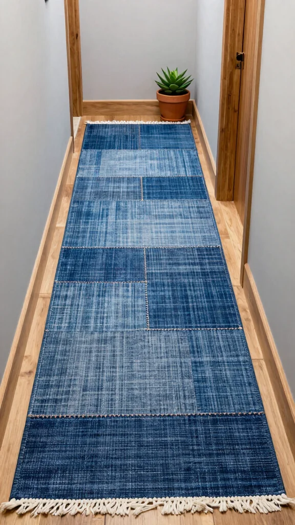 Recycled denim runners are a creative way to introduce style while championing sustainability in your hallway. With rich blue hues and unique textures, these rugs make a bold statement, transforming discarded materials into chic decor. Imagine the personality a denim runner adds, making your hallway a conversation starter.