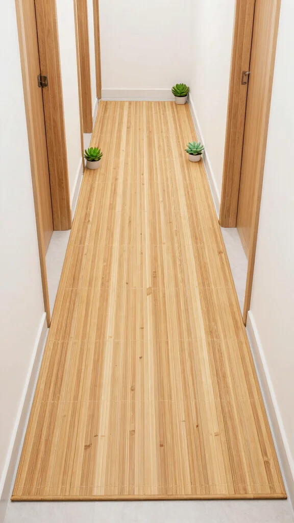 To implement this design, choose a bamboo runner that fits your hallway’s dimensions and aesthetic. These can often be found at home decor stores or online retailers specializing in sustainable products.