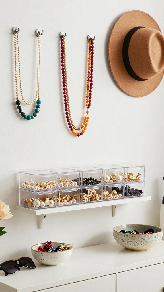 An organized display for accessories can elevate your dressing room while keeping smaller items within easy reach. Instead of hiding everything in drawers, showcase your favorites in an engaging way that enhances the overall design.
