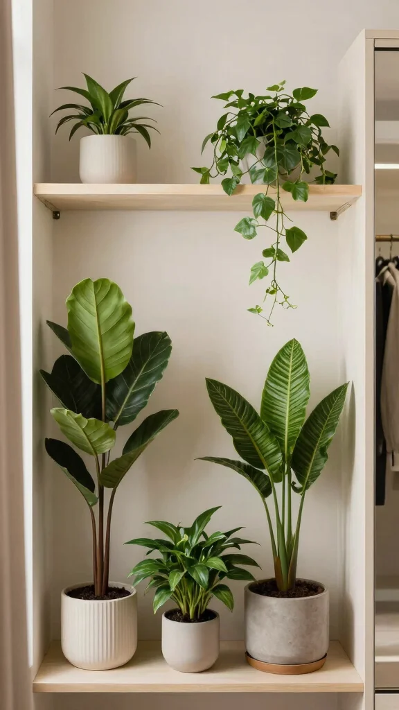 Introducing plants into your dressing room can add a refreshing touch and improve air quality. Thoughtful placement enhances a calming atmosphere while serving as a stylish accessory.