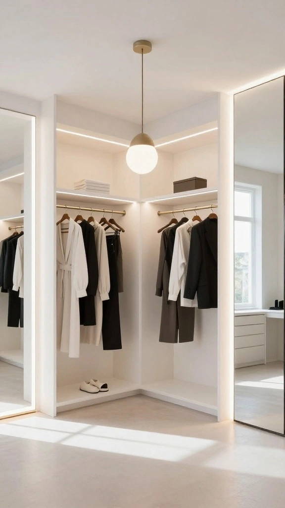With the right lighting solutions, your dressing room transforms into a bright, inviting area that enhances your minimalist design.