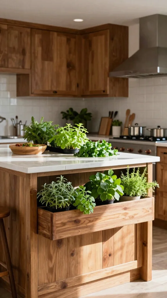 Opt for kitchen-friendly plants like basil or mint to keep fresh ingredients at your fingertips. This island concept is perfect for those who appreciate a lively and vibrant cooking environment.