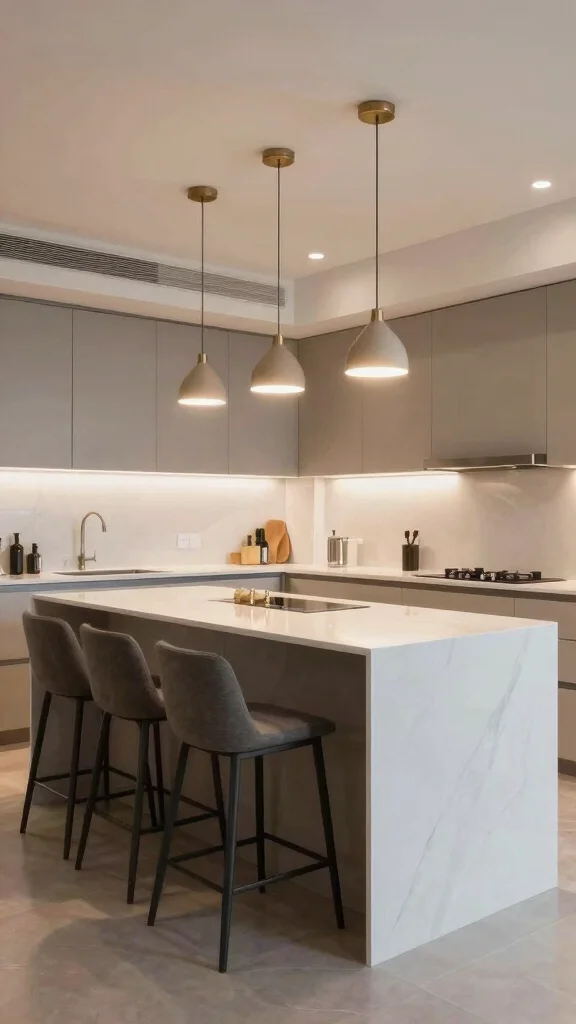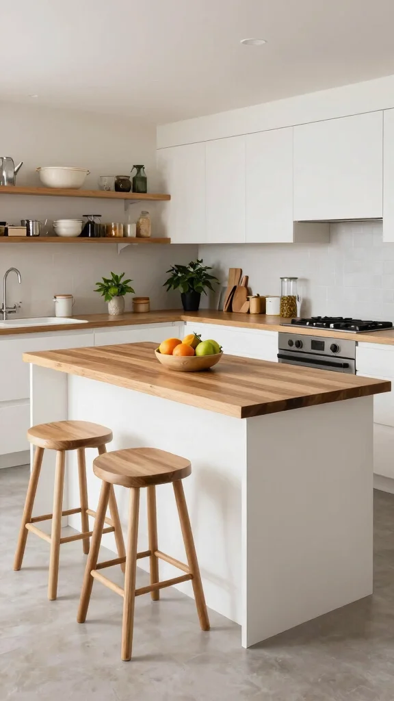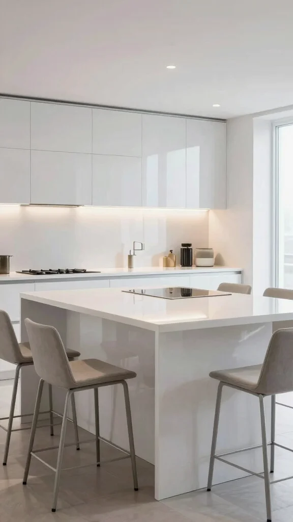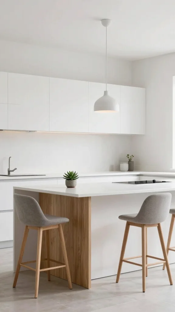 Pair your minimalist island with sleek, modern stools for a cohesive look. Adding a touch of greenery or a single decorative item can elevate the design while maintaining a clutter-free space.