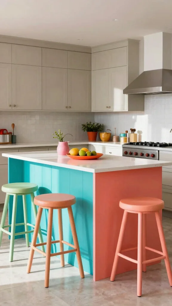 Adding a splash of color to your kitchen island can transform it into a vibrant focal point. A colorful island infuses personality and warmth, making your kitchen feel more inviting and enjoyable.
