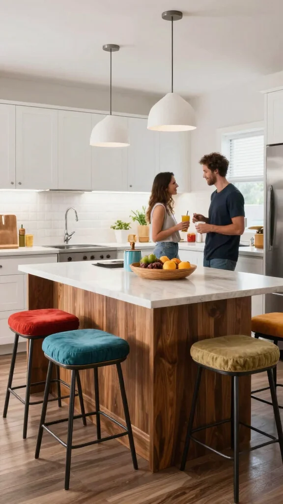 Consider selecting an island with a small overhang to comfortably accommodate bar stools. Adding cushions or a decorative rug can enhance comfort and style, making it a favorite spot in your home.