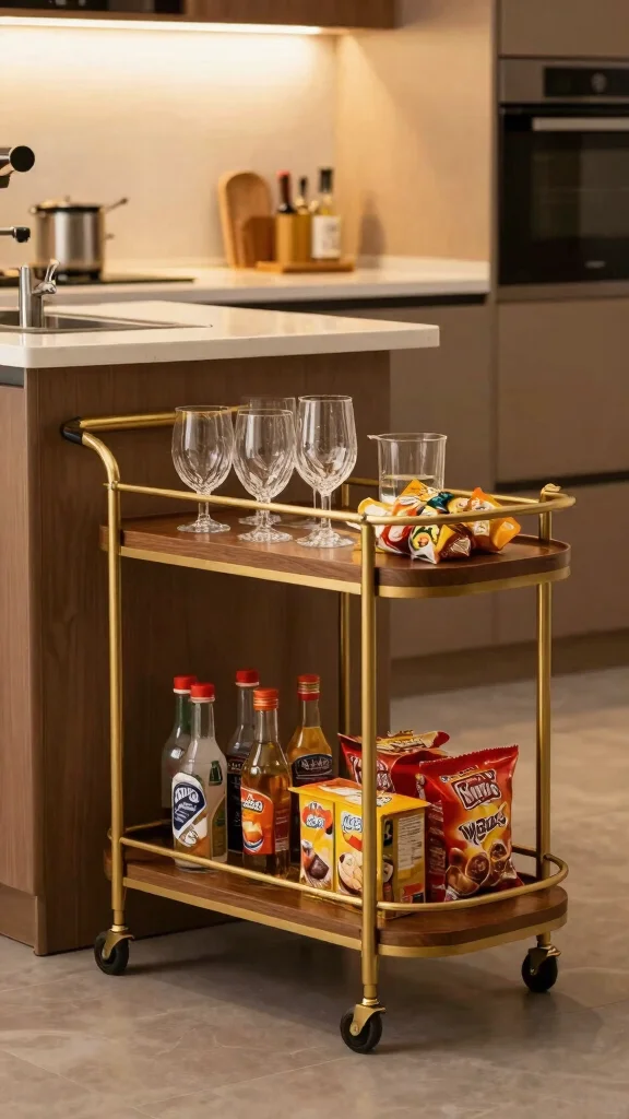 Choose a bar cart with wheels and a design that complements your kitchen decor. Displaying barware or decorative items can enhance the aesthetic and make a bold statement.