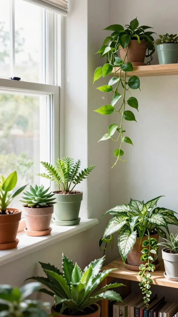 Consider using succulents for their fun shapes and easy care, or snake plants for air purification. Pothos can be beautiful in hanging baskets or as tabletop decor, offering versatility. This approach not only beautifies your dressing area but also promotes a sense of well-being.