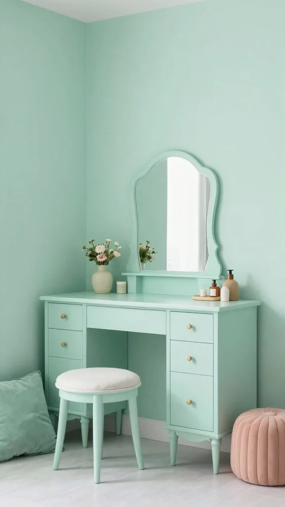 This arrangement not only provides a practical grooming space but also enhances the visual appeal of your room, making it a delightful spot to prepare for the day.
