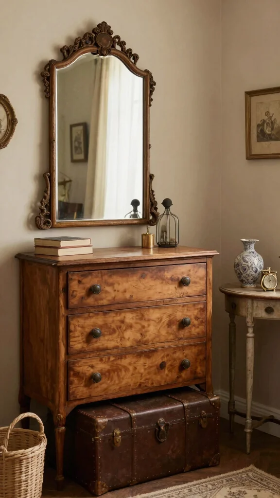 Blending vintage finds creates a unique atmosphere that tells a story and adds warmth to your dressing room.