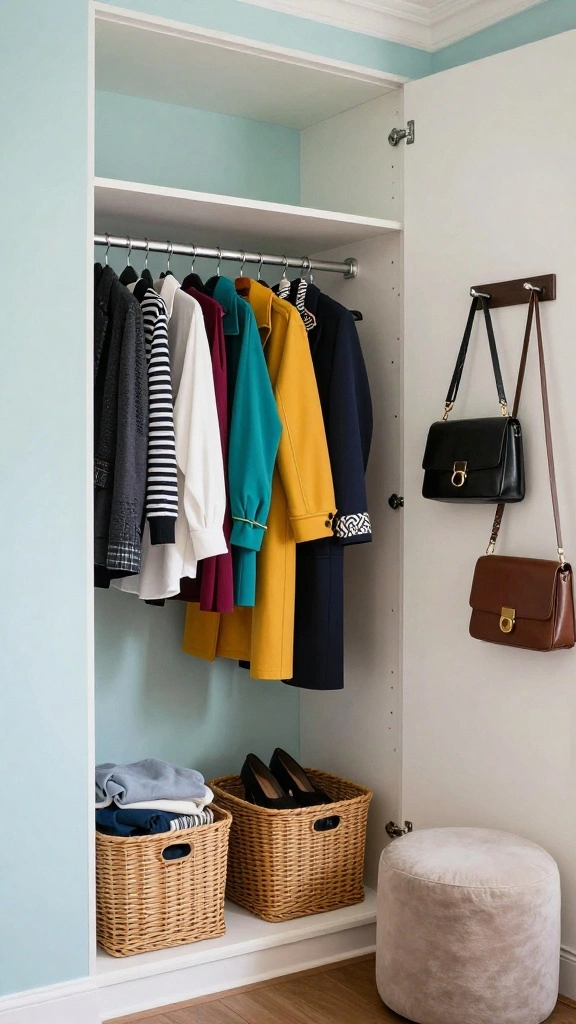 – Use stylish baskets for storing seasonal wear, keeping everything tidy.