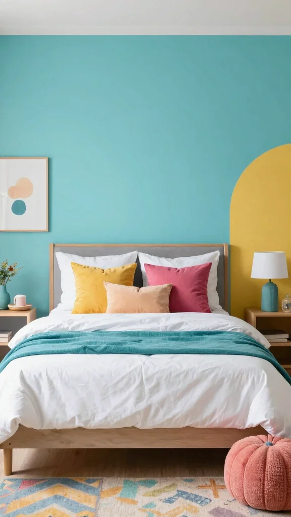 – Use colorful accessories like throw pillows or vases.