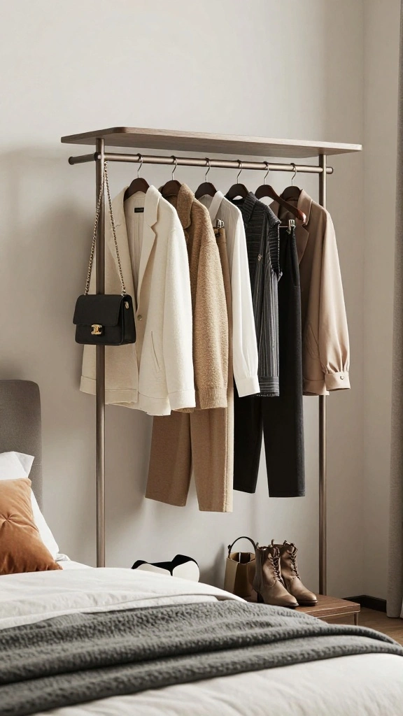 This method keeps your dressing area organized and optimizes your bedroom space.