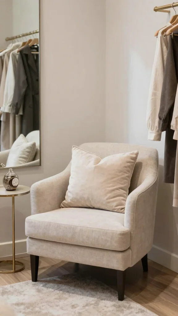 Fun fact: a cozy seating area in a dressing room with bathroom can reduce morning stress by up to 20%. With a plush chair and soft throw, you’ll create a welcoming space that boosts practicality and calm before the day begins.
