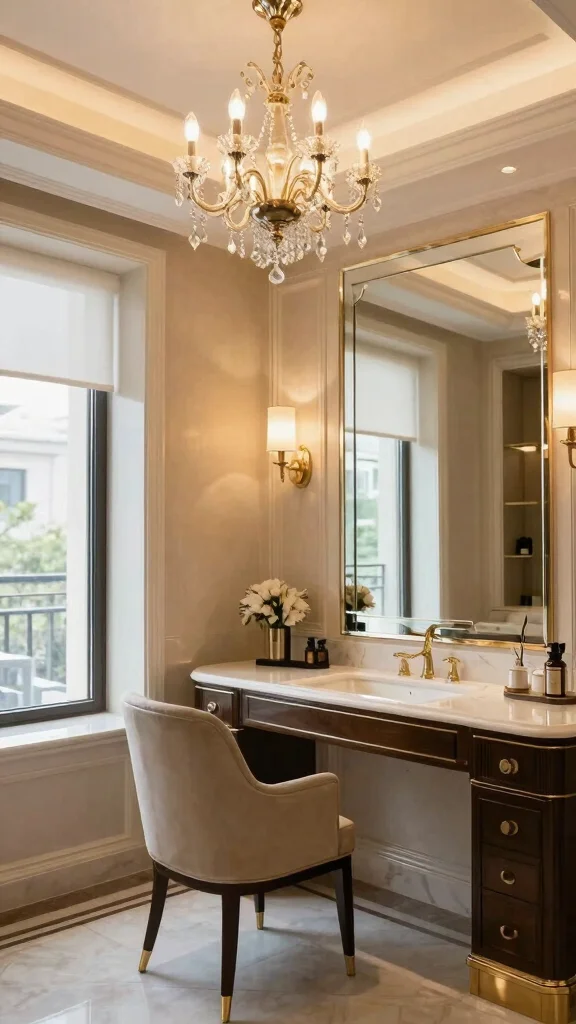 Luxurious lighting fixtures are essential for setting the right mood in your dressing room and bathroom. Thoughtfully chosen lighting can elevate both the functionality and aesthetic appeal of the space. Imagine a stunning chandelier casting a warm glow over your dressing area, while wall-mounted sconces provide flattering illumination for makeup application. Soft recessed lighting can brighten the entire room, and dimmers allow you to adjust the brightness based on the time of day or your mood.