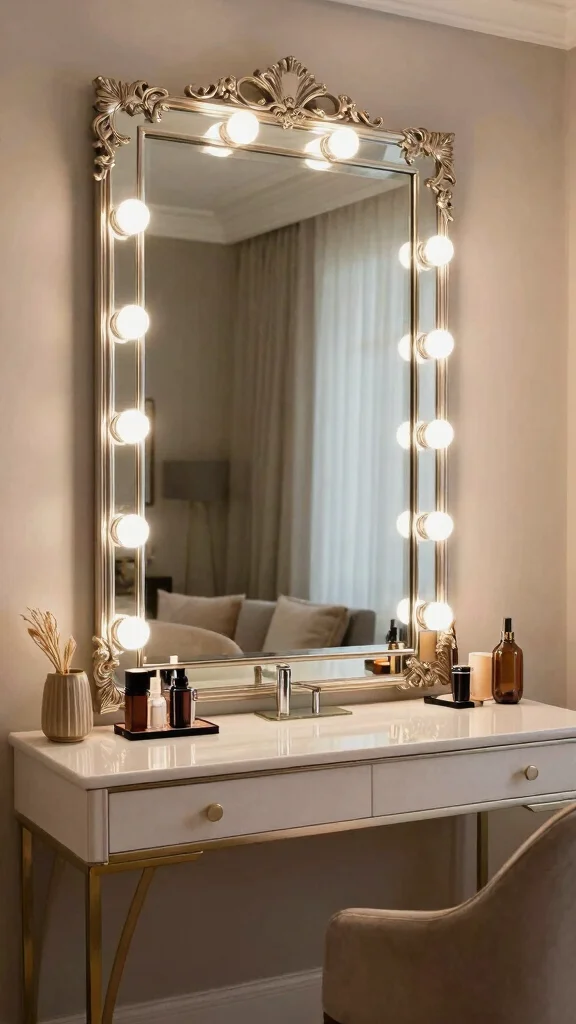 Choose mirrors that reflect your personal style, whether that’s modern, vintage, or eclectic. By incorporating mirrors that catch and bounce light, you can create a stunning focal point while ensuring practicality for dressing and grooming.