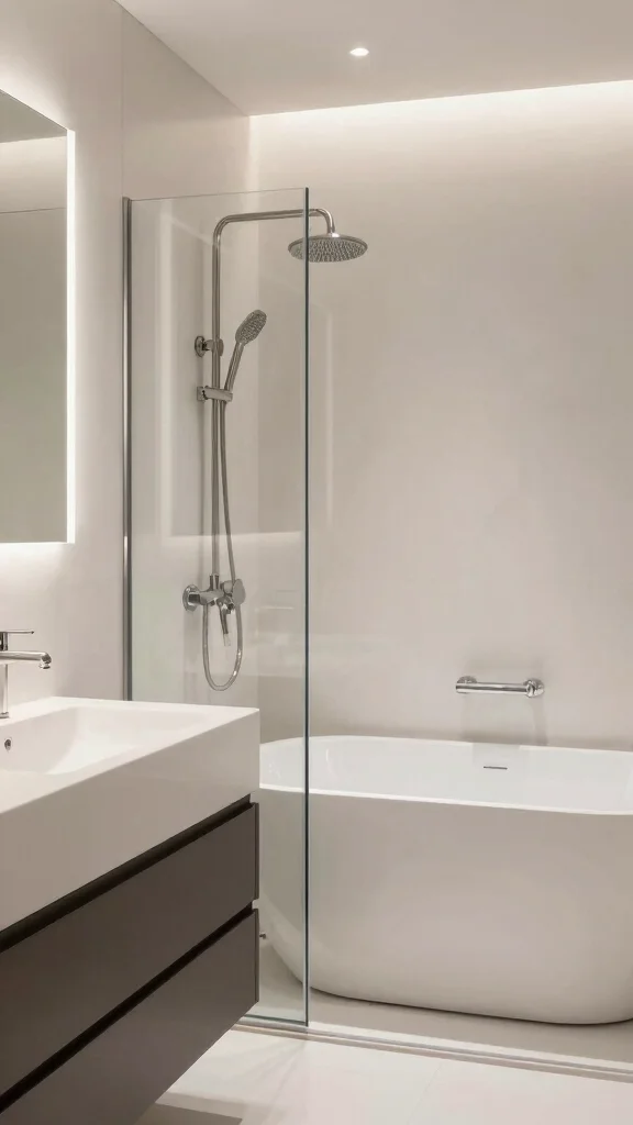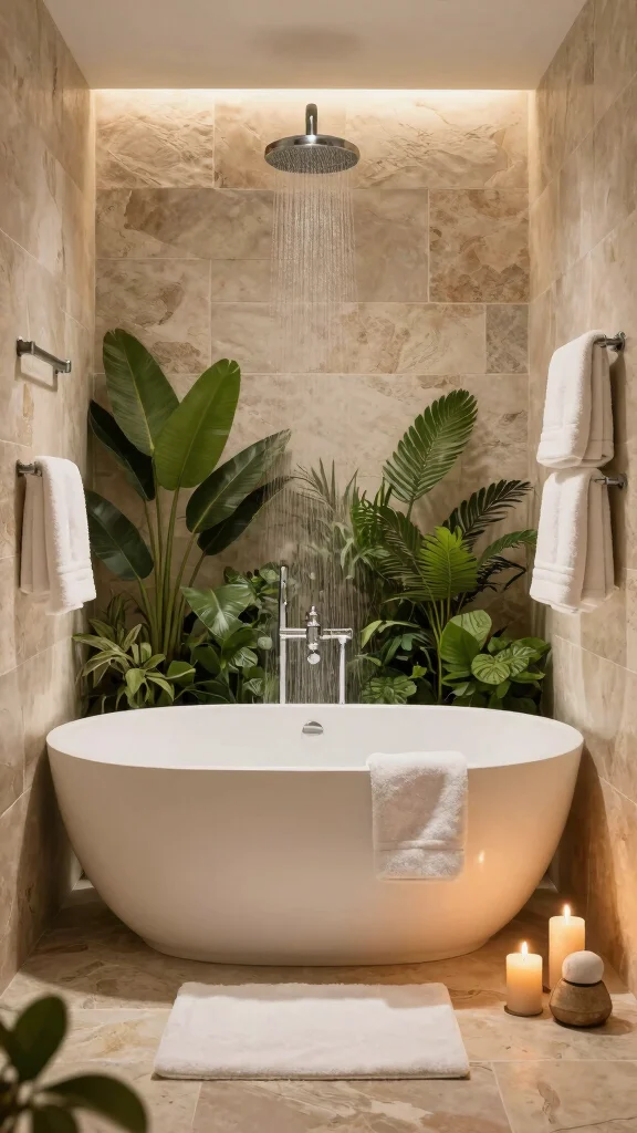 Creating a spa-like atmosphere in your bathroom can transform your daily routine into a luxurious escape. Imagine soothing color palettes, rainfall showerheads, and freestanding tubs that evoke tranquility. Incorporating features like heated towel racks, aromatherapy diffusers, and lush greenery can further enhance this serene environment. A walk-in shower with glass doors contributes to a seamless look, while natural materials like stone and wood foster a calming vibe.