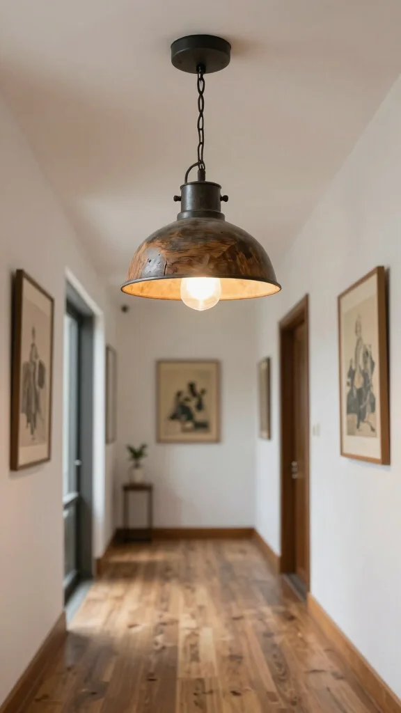 For a blend of rustic charm and industrial flair, overhead lights that incorporate both styles are a fantastic choice. These fixtures often feature elements like weathered wood, metal rods, and raw finishes, creating a bold statement in your hallway. The combination adds character while providing ample light, making your space feel both homey and stylish. Choose the right metal finish to enhance the rustic elements, giving your hallway a modern yet inviting touch.