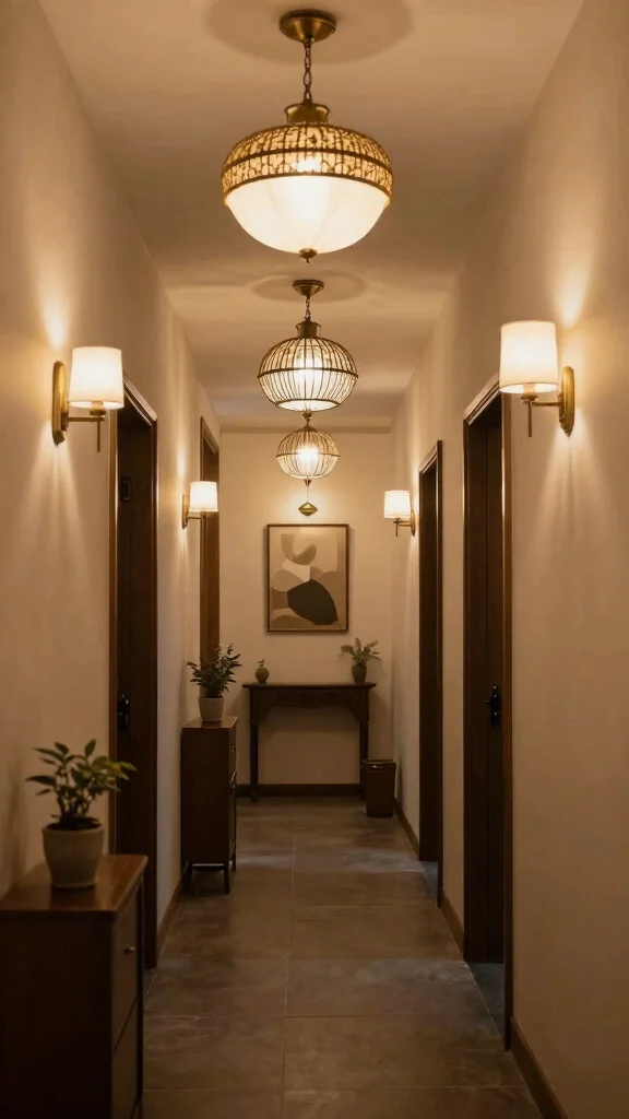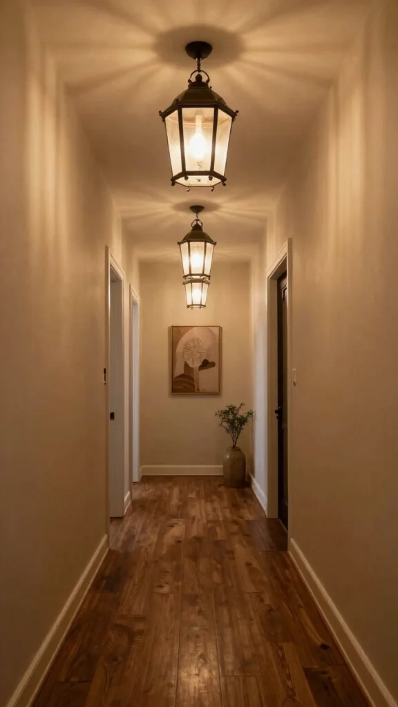 To achieve a visually dynamic effect, consider hanging lanterns at varying heights. Using glass shades can diffuse light softly, enhancing the overall warmth of your hallway.