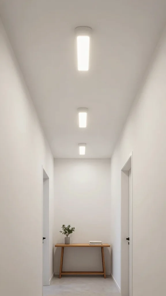 For those leaning towards a modern aesthetic, LED panel lights offer a sleek, energy-efficient choice for illuminating your hallway. These fixtures provide bright light in a minimalist format, perfect for contemporary decor. Available in various sizes, they can be installed flush into ceilings or walls, contributing to a clean, open feel that enhances the spaciousness of your hallway.