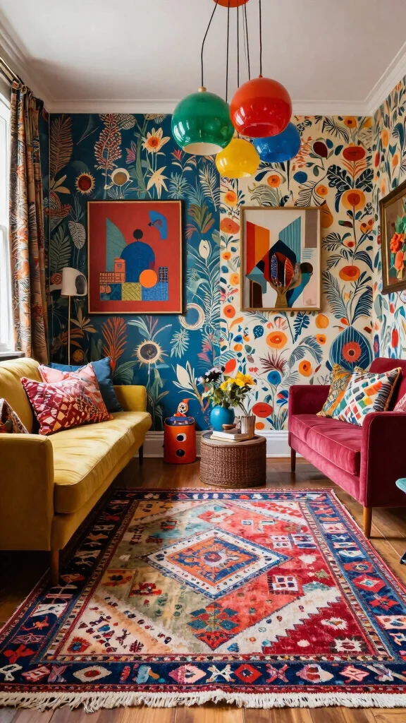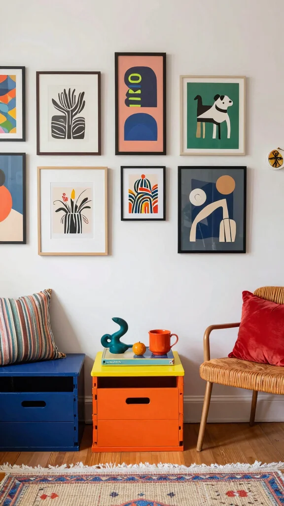 – Incorporate unique wall art or tapestries.