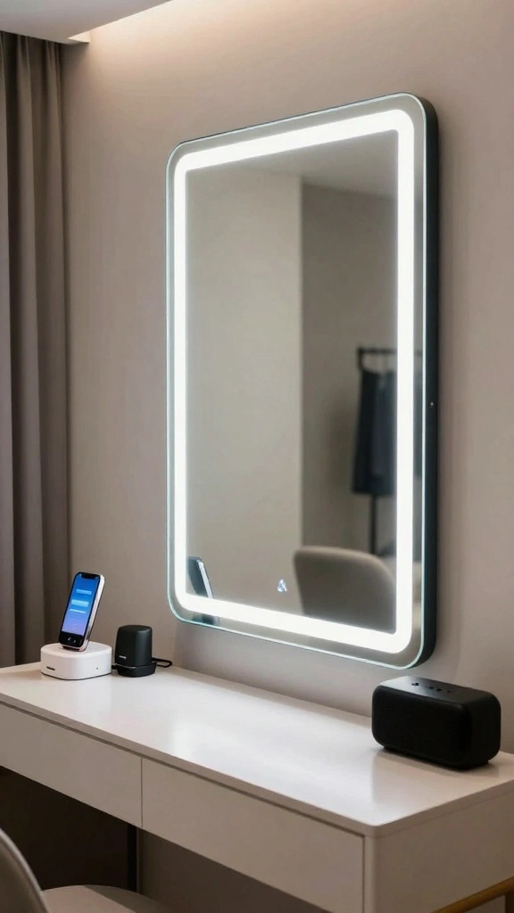 Incorporate smart storage solutions and technology for an organized and modern dressing room experience.