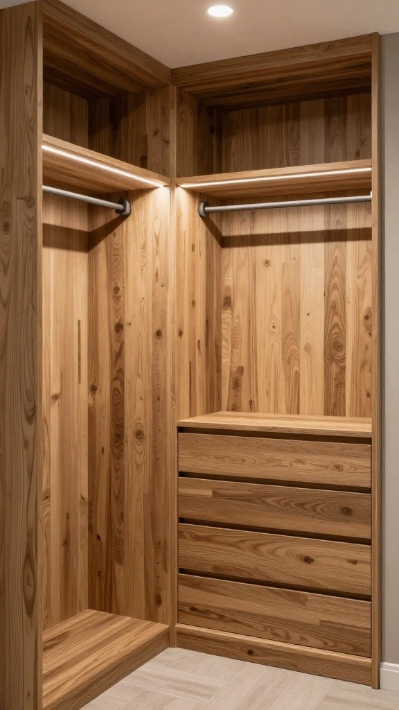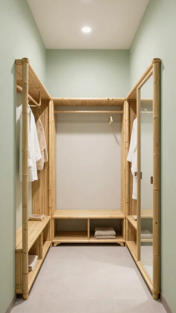 Choose eco-friendly materials for storage and decor to enhance sustainability in your dressing room.