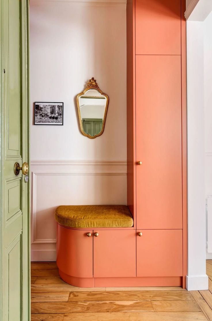 Add a splash of color to your narrow hallway with a vibrant wardrobe solution. A brightly colored wardrobe can serve as a focal point while providing necessary storage.
