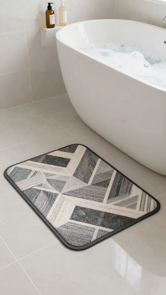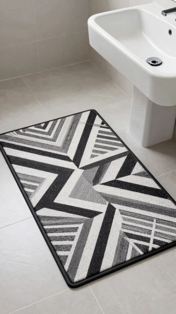 Graphical pattern rugs bring a modern flair to your bathroom, offering striking visuals that can energize the space. These mats often feature bold geometric shapes or lines that create a contemporary aesthetic, making them perfect for those who appreciate cutting-edge design.