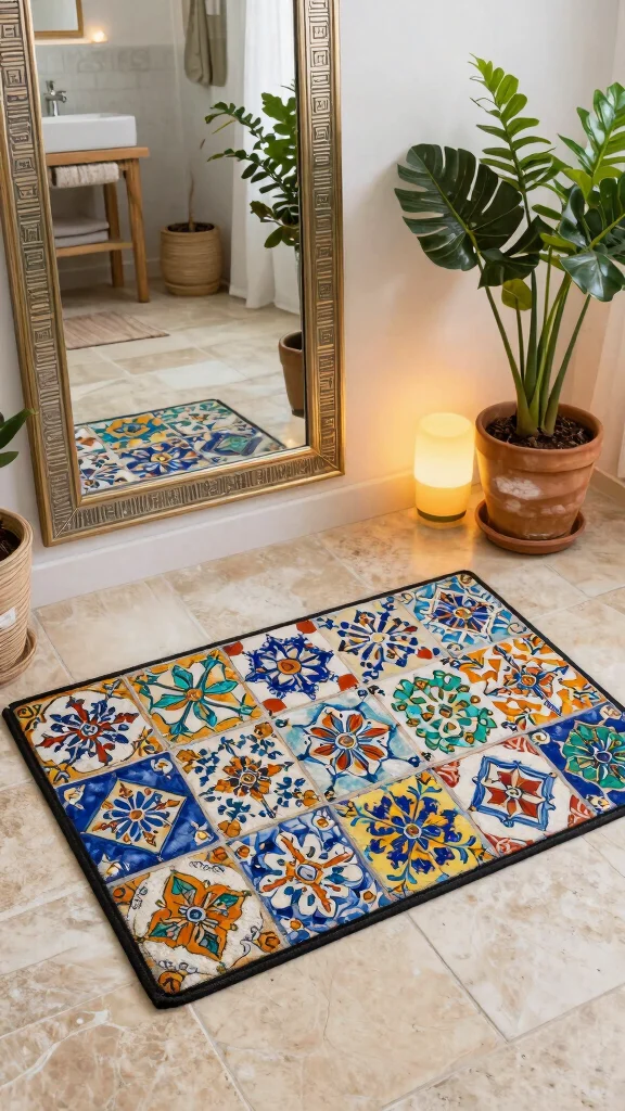 Bring the spirit of adventure home with travel-inspired mats that feature designs from around the world. These mats can evoke memories of your travels or showcase cultures that inspire you, adding a personal touch to your bathroom decor.