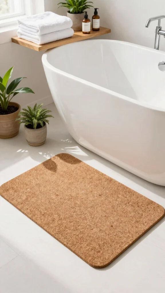 To achieve a harmonious look, match cork mats with light, airy tiles and complement them with natural elements like bamboo baskets. Their unique aesthetic can enhance your bathroom’s overall vibe while remaining practical and stylish.