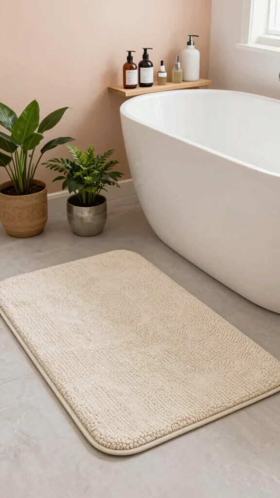 – Select natural fiber bath mats that are stylish and biodegradable, making your bathroom both chic and eco-conscious.