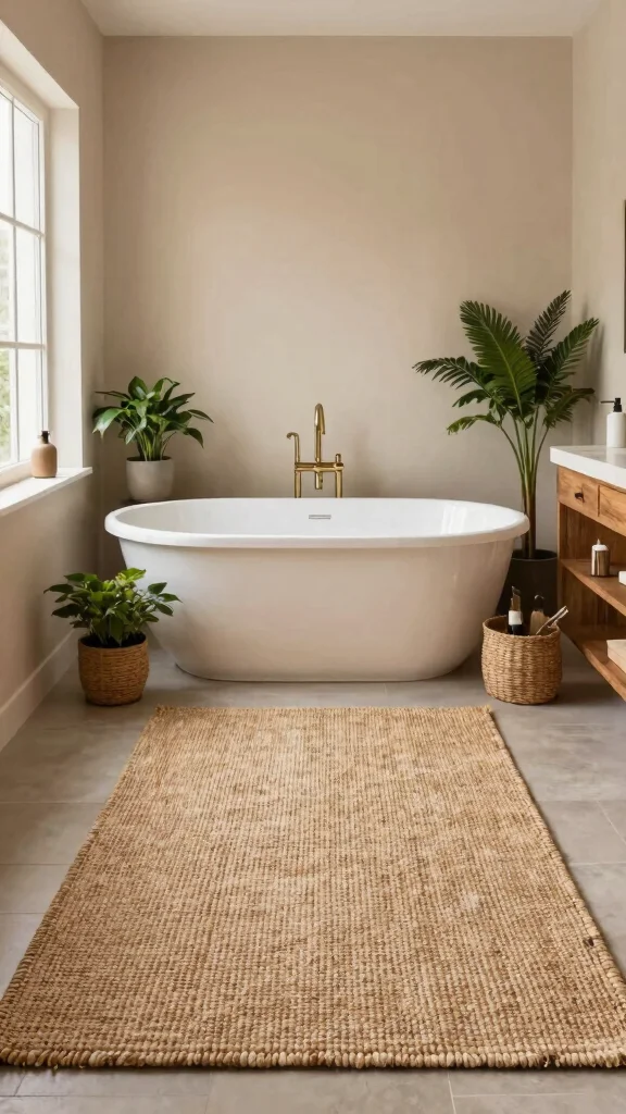 Incorporating a natural fiber rug elevates your bathroom’s overall ambiance while embracing eco-friendly materials.