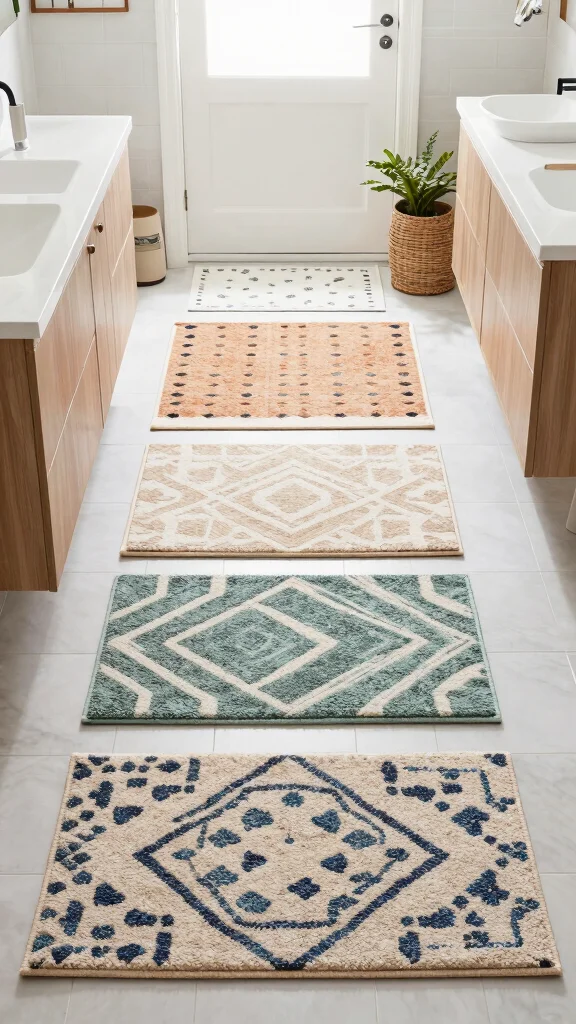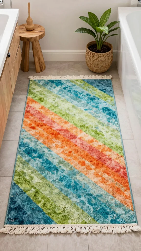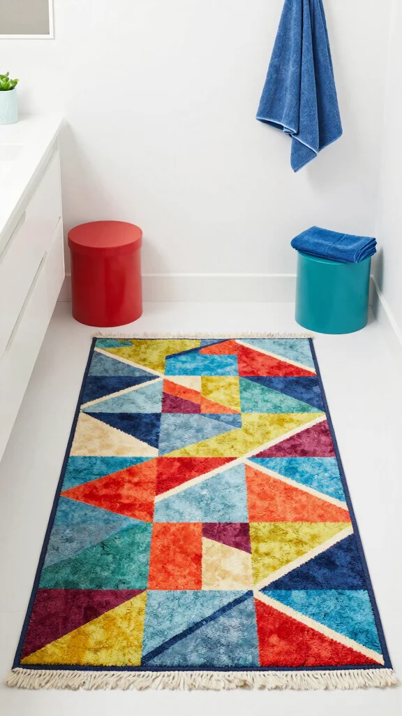 Bright and colorful rugs are perfect for those wanting to inject energy and personality into their bathroom. Featuring vibrant geometric patterns or playful designs, these rugs can serve as eye-catching accessories that elevate your decor. Imagine a lively rug bringing cheer to an otherwise neutral space, setting a joyful tone for your daily routines.