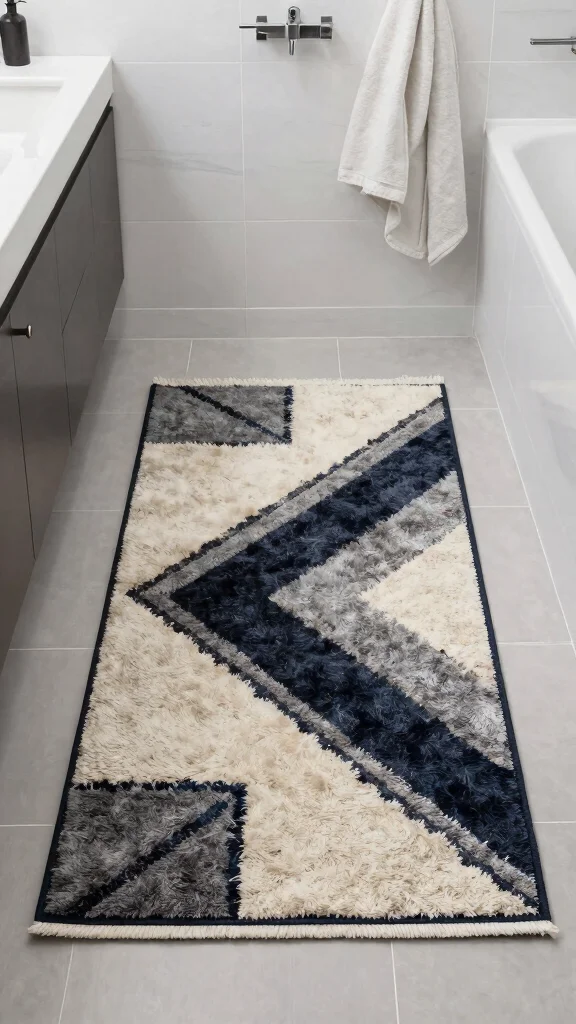 Graphic print rugs serve as a fantastic way to introduce modern art into your bathroom. Featuring bold graphics or abstract designs, these rugs can become the centerpiece of your space, showcasing your unique style. Imagine a striking graphic rug drawing the eye and sparking conversation, adding a layer of creativity to your decor.